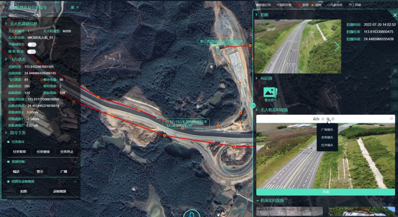 支持多无人机编队协同,通过虚拟遥控器远程集中操控云台、相机及语音播报,与地面救援力量无缝联动,支持对接第三方机场实现无人值守作业。