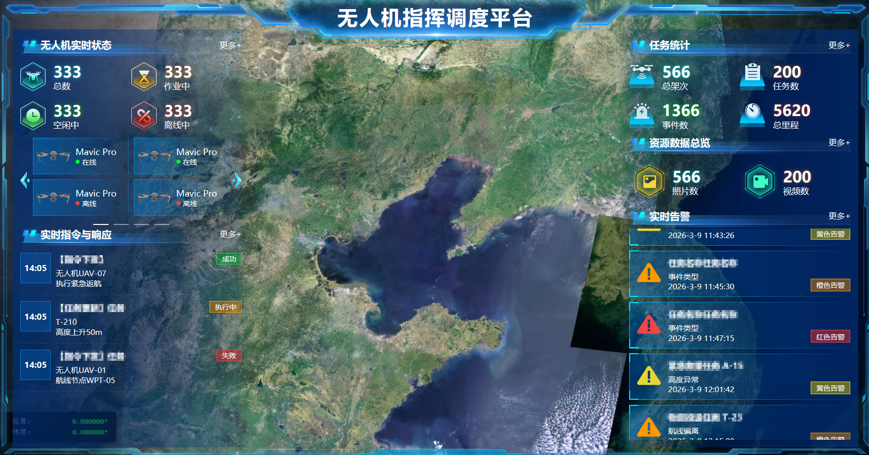 实时采集无人机位置、飞行状态、电量、任务进度等信息,融合高清视频直播与三维地图,构建数字3D现场,指挥中心可厘米级精度掌控全局。